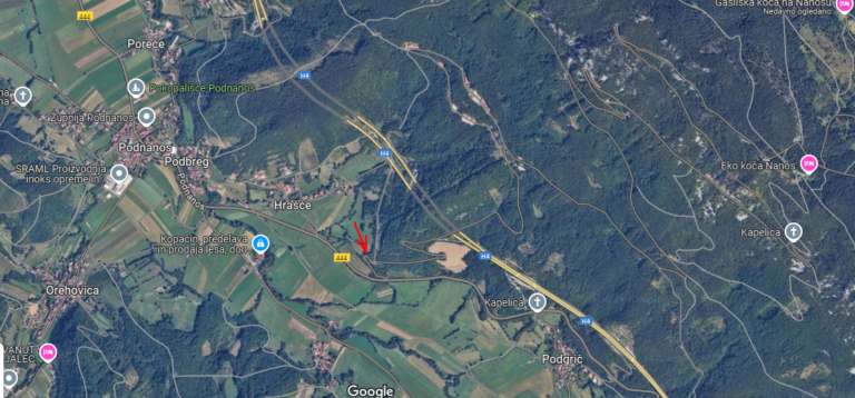 Odcep ceste proti Nanosu (1 km iz Podnanosa):